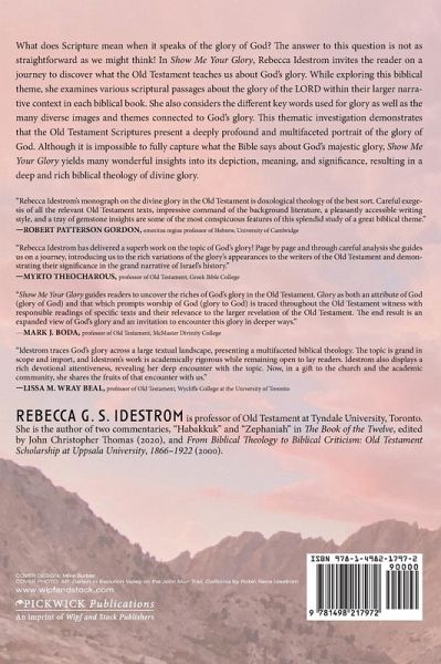 What does Scripture mean when it speaks of the glory of God? The answer to this question is not as straightforward as we might think! In Show Me Your Glory, Rebecca Idestrom invites the reader on a journey to discover what the Old Testament teaches us about God's glory. While exploring this biblical theme, she examines various scriptural passages about the glory of the LORD within their larger narrative context in each biblical book. She also considers the different key words used for glory as well as the many diverse images and themes connected to God's glory. This thematic investigation demonstrates that the Old Testament Scriptures present a deeply profound and multifaceted portrait of the glory of God. Although it is impossible to fully capture what the Bible says about God's majestic glory, Show Me Your Glory yields many wonderful insights into its depiction, meaning, and significance, resulting in a deep and rich biblical theology of divine glory.