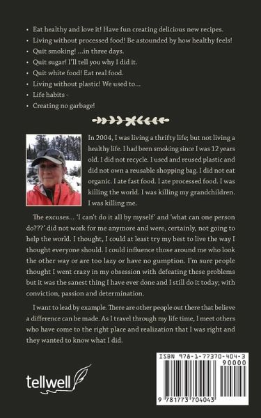 Eat healthy and love it! Have fun creating delicious new recipes. Living without processed food! Be astounded by how healthy feels! Quit smoking! ...in three days. Quit sugar! I'll tell you why I did it. Quit white food! Eat real food. Living without plastic! We used to... Life habits - Creating no garbage! In 2004, I was living a thrifty life; but not living a healthy life. I had been smoking since I was 12 years old. I did not recycle. I used and reused plastic and did not own a reusable shopping bag. I did not eat organic. I ate fast food. I ate processed food. I was killing the world. I was killing my grandchildren. I was killing me. The excuses... 'I can't do it all by myself' and 'what can one person do???' did not work for me anymore and were, certainly, not going to help the world. I thought, I could at least try my best to live the way I thought everyone should. I could influence those around me who look the other way or are too lazy or have no gumption. I'm sure people thought I went crazy in my obsession with defeating these problems but it was the sanest thing I have ever done and I still do it today; with conviction, passion and determination. I want to lead by example. There are other people out there that believe a difference can be made. As I travel through my life time, I meet others who have come to the right place and realization that I was right and they wanted to know what I did.