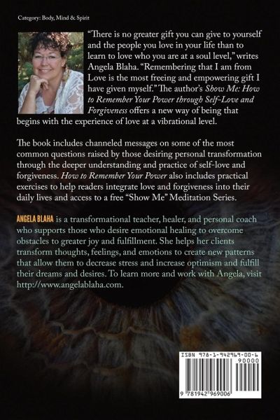 "There is no greater gift you can give to yourself and the people you love in your life than to learn to love who you are at a soul level," writes Angela Blaha. "Remembering that I am from Love is the most freeing and empowering gift I have given myself." The author's Show Me: How to Remember Your Power through Self-Love and Forgiveness offers a new way of being that begins with the experience of love at a vibrational level. The book includes channeled messages on some of the most common questions raised by those desiring personal transformation through the deeper understanding and practice of self-love and forgiveness. How to Remember Your Power also includes practical exercises to help readers integrate love and forgiveness into their daily lives and access to a free "Show Me" Meditation Series. "There is no greater gift you can give to yourself and the people you love in your life than to learn to love who you are at a soul level," writes Angela Blaha. "Remembering that I am from Love is the most freeing and empowering gift I have given myself." The author's Show Me: How to Remember Your Power through Self-Love and Forgiveness offers a new way of being that begins with the experience of love at a vibrational level. Angela Blaha is a transformational teacher, healer, and personal coach who supports those who desire emotional healing to overcome obstacles to greater joy and fulfillment. She helps her clients transform thoughts, feelings, and emotions to create new patterns that allow them to decrease stress and increase optimism and fulfill their dreams and desires. To learn more and work with Angela, visit http://www.angelablaha.com.
