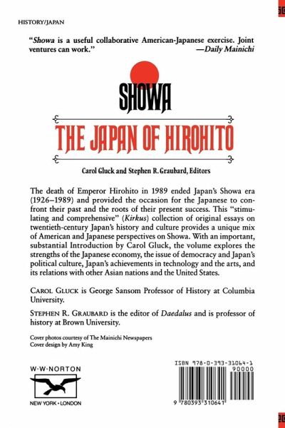 This "stimulating and comprehensive" (Kirkus Reviews) collection of original essays on twentieth-century Japan's history and culture provides a unique mix of American and Japanese perspectives on Showa. With an important, substantial Introduction by Carol Gluck, the volume explores the strengths of the Japanese economy, the issue of democracy and Japan's political culture, Japan's achievements in technology and the arts, and its relations with other Asian nations and the United States.