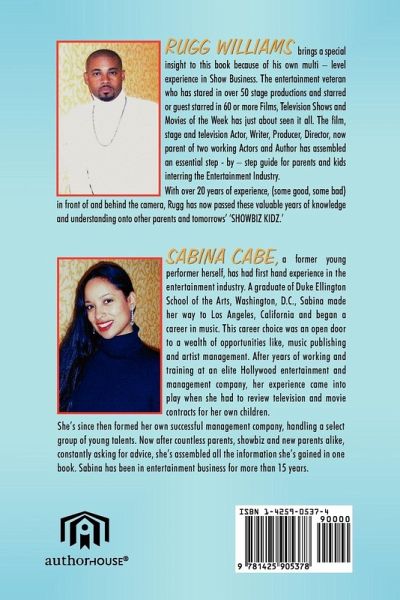 'SHOBIZ KIDZ' is an informative guide for parents who want to arm themselves and their children for the highly competitive business of entertainment. This remarkable book supplies and explains to parents the truth about the business. Information you would normally only gain from experience on the job, is released in this inspirational, step - by - step book. The HOW, WHAT, WHO, WHEN, WHERE, and WHY are all answered in 'SHOWBIZ KIDZ'. The extraordinary authors Rugg Williams and Sabina Cabe have gone right to the source and assembled interviews and testimonies from award winning casting directors, producers, directors, knowledgeable parents as well as some well known 'Showbiz Kidz'. Enjoy conversations with writer / director, Chip Fields - Hurd, casting director, Sharon Lieblein, top Hollywood agents Meredith Fine & Dana Edrick and writer and executive producer Fracaswell Hyman. No longer will you have to wonder if your child could be in Show Business. 'SHOWBIZ KIDZ' shares the inside facts you will need for a long - lasting successful entertainment career from start to finished. Discover essential details of what's needed "Before you Start" to "Working Tools" to "Vital Information about the Business." 'SHOWBIZ KIDZ' leaves no stone unturned, covering a wide variety of pointers including: photographers, resumes, auditions, unions and much, much more. Don't lack the knowledge, take the time to prepare for your 'SHOWBIZ KIDZ'! This book will allow you to start TODAY! "If you are considering taking your child down the path of show business, then 'SHOWBIZ KIDZ' is the book for you"! Actress/Writer/Former Showbiz Parent & Director - Chip Fields - Hurd