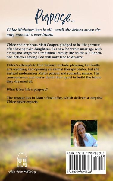 Chloe McIntyre has it all-until she drives away the only man she's ever loved. Chloe and her beau, Matt Cooper, pledged to be life partners after having twin daughters. But now he wants marriage with a ring and longs for a traditional family life on the 617 Ranch. She believes saying I do will only lead to divorce. Chloe's attempts to find balance include planning her brother's wedding and opening an animal therapy center, but she instead undermines Matt's patient and romantic nature. The consequences and losses derail their quest to build the future they dreamed of. What is her life's purpose? The answer lies in Matt's final offer, which delivers a surprise Chloe never expects.