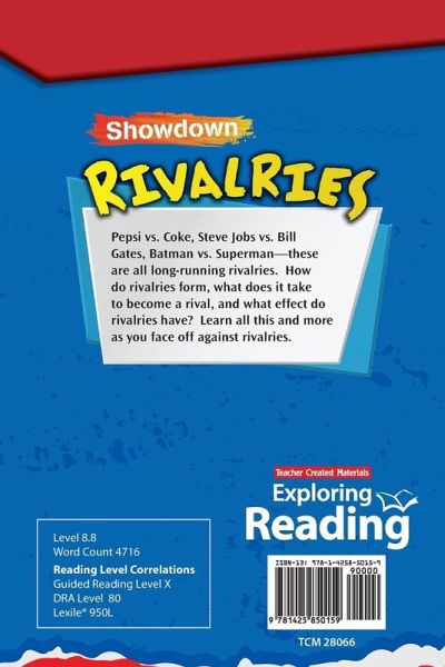 Hamilton vs. Jefferson, Gates vs. Jobs, Bird vs. Johnson, and Coke vs. Pepsi are all examples of rivalries. What defines a rivalry and why do they develop? Do rivalries push people to perform better, or do they hurt progress? Examine these questions and learn about some of the biggest rivalries in politics, business, sports, and culture from throughout history--starting with the Founding Fathers themselves! Packed with fun facts and fascinating sidebars, this full-color informational text examines contemporary issues through high-interest content. Featuring TIME© content and images, this nonfiction book has text features such as a glossary, an index, and a table of contents to engage students in reading as they build their comprehension, vocabulary, and reading skills. The Reader's Guide and extended Try It! activity increase understanding of the material, and develop higher-order thinking. Check It Out! offers print and online resources for additional reading. Keep students reading from cover to cover with this captivating text!