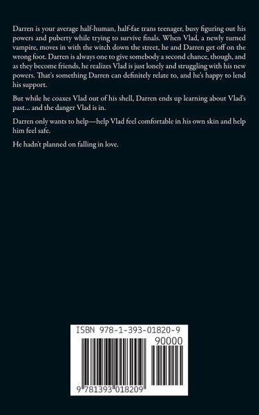 Darren is your average half-human, half-fae trans teenager, busy figuring out his powers and puberty while trying to survive finals. When Vlad, a newly turned vampire, moves in with the witch down the street, he and Darren get off on the wrong foot. Darren is always one to give somebody a second chance, though, and as they become friends, he realizes Vlad is just lonely and struggling with his new powers. That's something Darren can definitely relate to, and he's happy to lend his support. But while he coaxes Vlad out of his shell, Darren ends up learning about Vlad's past... and the danger Vlad is in. Darren only wants to help-help Vlad feel comfortable in his own skin and help him feel safe. He hadn't planned on falling in love.