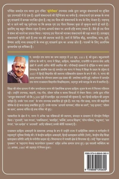 The novel Shrangeri Math is one of the ten novels written by Manishi Pdt. Janardan Rai Nagar on Jagadguru Shankaracharya. It describes Shankaracharya's Victory across the literary world of his time. In the debate between Shankaracharya and Krachak, the latter is defeated. He sends Ugra Bhairav to kill Shankaracharya. Padmapad somehow has a premonition that Krachak and Ugra Bhairav are hatching some conspiracy. So he remains very cautious and keeps a vigil on Shankaracharya. As soon as Ugra Bhairav attempts to kill Shankaracharya he intervenes and saves him by killing Ugra Bhairav. Shankaracharya thereafter goes to Shringeri and sets up his monastery (Math) there. The novel is a perennial fountainhead of the record of debates that Shankaracharya engaged in with scholars of different faiths including Buddhist, Kapalik, Naath, Suri, Vaishnav, etc. en route to Shringeri. Thus it makes very interesting reading for those readers who wish to develop deep into the ocean of ancient Indian scholarship.