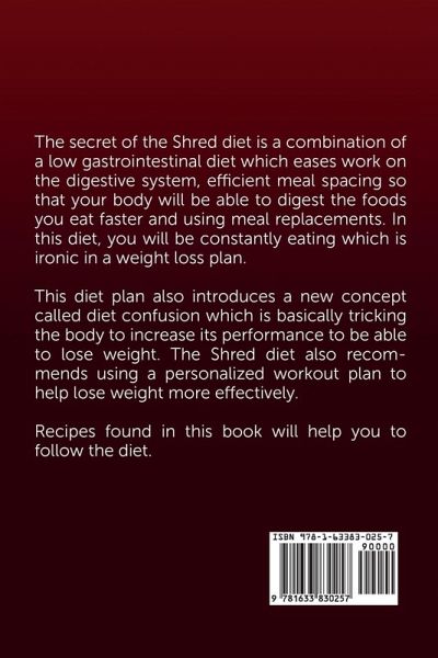 The secret of the Shred diet is a combination of a low gastrointestinal diet which eases work on the digestive system, efficient meal spacing so that your body will be able to digest the foods you eat faster and using meal replacements. In this diet, you will be constantly eating which is ironic in a weight loss plan. This diet plan also introduces a new concept called diet confusion which is basically tricking the body to increase its performance to be able to lose weight. The Shred diet also recommends using a personalized workout plan to help lose weight more effectively. Recipes found in this book will help you to follow the diet.