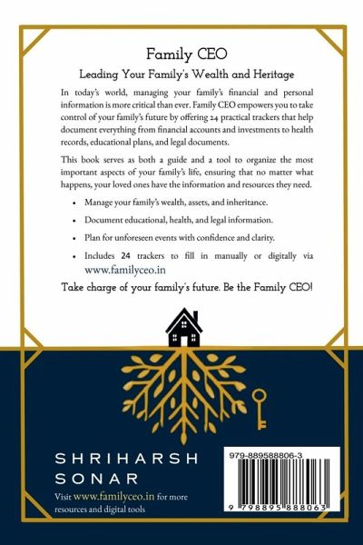When the author's spouse was diagnosed with a rare form of cancer, it shattered his comfort and sparked deep reflections on life's uncertainties. He realized that having money alone is insufficient; without proper arrangements for accessing it during crises, families can be left vulnerable. While not the essence of life, money serves as the lubricant that keeps the family engine running smoothly. This experience inspired the creation of Family CEO, a platform designed to help families prepare for the unexpected. Whether facing the sudden loss of a parent or ensuring proper care for a special needs family member, finding critical financial, medical, and legal information amid emotional turmoil can be challenging. Family CEO serves as a practical guide, helping families manage their wealth and ensure continuity and security. Covering sensitive topics like emergency funds, health insurance, and funeral arrangements, the book introduces 24 essential trackers for financial portfolios, health records, children's education, and more. Documenting these areas reduces stress and confusion, making vital information readily accessible when needed. Accompanying the book is the website www.familyceo.in, offering a secure digital solution for families to store and update information. With interactive tabs for each tracker, users can manage their details. The Family Tree (Vanshavali) feature also encourages recording lineage, allowing future generations to preserve their family's history.