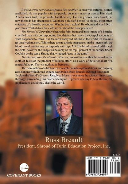 It was a crime scene investigation like no other. A man was tortured, beaten, and killed. He was popular with the people, but many in power wanted Him dead. After a mock trial, the powerful had their way. He was given a hasty burial, but now the body has disappeared. Was there a clue left behind? A bloody sheet offers evidence of a horrific execution. Was the body stolen? By whom and why? Did it just vanish? What does the cloth reveal about the disappearance? The Shroud of Turin (Italy) bears the faint front and back image of a bearded crucified man with corresponding bloodstains that match the Gospel accounts of what happened to Jesus. It is the most analyzed artifact in the world yet remains an unsolved mystery. While there are no artistic substances on the linen cloth, the blood is real, and testing corresponds with type AB. The blood has soaked through the cloth; however, the image resides only on the top 1 percent of the surface fibers. Could it be the same Shroud that wrapped Jesus in the tomb? The Shroud poses the ultimate either-or proposition as either the actual burial cloth of Jesus or the product of human effort, as a work of devotional art or a masterful hoax. There is nothing in between. The culmination of a lifetime of research, countless presentations, and ongoing associations with Shroud experts worldwide, Russ Breault's Shroud Encounter--Explore the World's Greatest Unsolved Mystery examines the science, history, and theology surrounding this profound enigma. If proven one day to be authentic, the implications could truly shake the world.