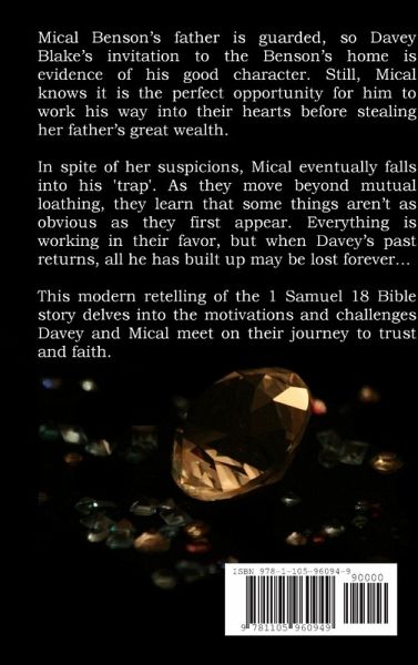 Mical Benson's father is guarded, so Davey Blake's invitation to the Benson's home is evidence of his good character. Still, Mical knows it is the perfect opportunity for him to work his way into their hearts before stealing her father's great wealth. In spite of her suspicions, Mical eventually falls into his 'trap'. As they move beyond mutual loathing, they learn that some things aren't as obvious as they first appear. Everything is working in their favor, but when Davey's past returns, all he has built up may be lost forever... This modern retelling of the 1 Samuel 18 Bible story delves into the motivations and challenges Davey and Mical meet on their journey to trust and faith.