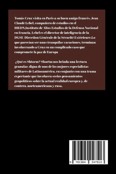 Tomás Cruz visita en Paris a su buen amigo francés, Jean Claude Lebel, compañero de estudios en el IHEDN,Instituto de Altos Estudios de la Defensa Nacional en Francia, Lebel es el director de inteligencia de la DGSE-Direction Générale de la Sécurité Extérieure.Lo que parecían ser unas tranquilas vacaciones, terminan involucrando a Cruz en un complicado caso que compromete la paz de Europa ¿Qué es Shtorm? Shortm nos brinda una lectura granular, digna de uno de los mejores especialistas militares de Latinoamérica, en conjunto con una trama expectante que involucra serios pensamientos geopolíticos sobre la actual realidad europea y, de contera, norteamericana y rusa.