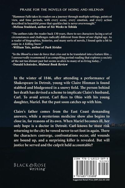 In the winter of 1846, after attending a performance of Shakespeare in Detroit, young wife Claire Hinman is found stabbed and bludgeoned in a snowy field. The person behind her death has devised a scheme to implicate Claire's husband, Carl. To avoid arrest, Carl flees to Ohio with his young daughter, Mariel. But the past soon catches up with him. Claire's father comes from the East Coast demanding answers, while a mysterious medicine show also begins to close in, for reasons of its own. When Mariel becomes ill, her only hope is a doctor in Detroit. Carl knows he must risk returning to the city he vowed never to set foot in again. There the characters converge, confrontations occur, old wounds are bound up, and a surprising killer is revealed. But will justice be served and the culprit held accountable?