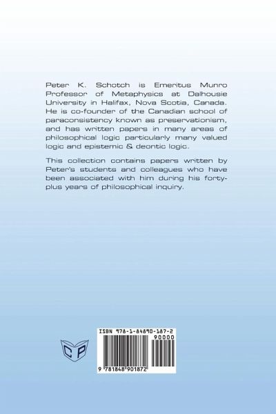 Peter K. Schotch is Emeritus Munro Professor of Metaphysics at Dalhousie University in Halifax, Nova Scotia, Canada. He is co-founder of the Canadian School of paraconsistency known as perservationism, and has written papers in many areas of philosophical logic particularly many valued logic and epistemic & deontic logic. This collection contains papers written by Peter's students and colleagues who have been associated with him during his forty-plus years of philosophical enquiry.