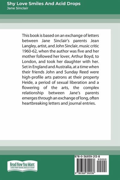 This book is based on an exchange of letters between Jane Sinclair's parents Jean Langley, artist, and John Sinclair, music critic 1960-62, when the author was five and her mother followed her lover, Arthur Boyd, to London, and took her daughter with her. Set in England and Australia, at a time when their friends John and Sunday Reed were high-profile arts patrons at their property Heide, a period of sexual liberation and a flowering of the arts, the complex relationship between Jane's parents emerges through an exchange of long, often heartbreaking letters and journal entries.
