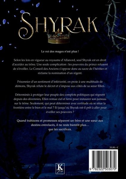 Le roi des Mages n'est plus !Selon les lois en vigueur au royaume d'Allanord, seul Shyrak est en droit d'accéder au trône. Une seule complication : les pouvoirs du prince refusent de s'éveiller. Le Conseil des Anciens s'oppose donc au sacre de l'héritier et réclame la nomination d'un régent. Prisonnier d'un sentiment d'infériorité, en proie à une multitude de démons, Shyrak réfute le décret et s'impose aux côtés de sa soeur Ellen.Déterminée à protéger leur peuple des complots politiques qui règnent depuis des décennies, Ellen remue ciel et terre pour instaurer son jumeau sur le trône. Seulement, qui peut déterminer avec certitude où se situe la frontière entre le bien et le mal ? Et jusqu'où Shyrak est-il prêt à aller pour éveiller ses pouvoirs ? Quand trahisons et promesses séparent un frère et une soeur aux destins entrelacés, il ne reste bientôt plus... que les sacrifices.