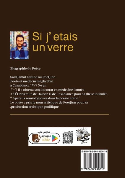 "Si j'étais un verre" - Un recueil poétique qui vous transporte dans un monde où l'amour, la passion et les émotions brutes se mêlent à des images surréalistes. L'auteur, PoetJinn (Said Jamal Eddine), nous offre une uvre unique écrite d'une manière qu'il qualifie lui-même d'"autistique", révélant une sensibilité profonde et un regard singulier sur les relations humaines. Au fil des pages, les mots se transforment en tableaux vivants où les corps aimés deviennent des paysages à explorer, où les sentiments se métamorphosent en objets du quotidien. Les poèmes oscillent entre tendresse et cruauté, désir et douleur, créant un mélange addictif qui captive le lecteur. Ce recueil, premier d'une série prévue jusqu'en 2039, s'adresse à ceux qui osent plonger dans les profondeurs de l'âme humaine, à la recherche de vérités universelles cachées derrière des images apparemment simples. Chaque poème est daté et numéroté, formant une sorte de journal intime poétique qui suit l'évolution des sentiments et des pensées de l'auteur.