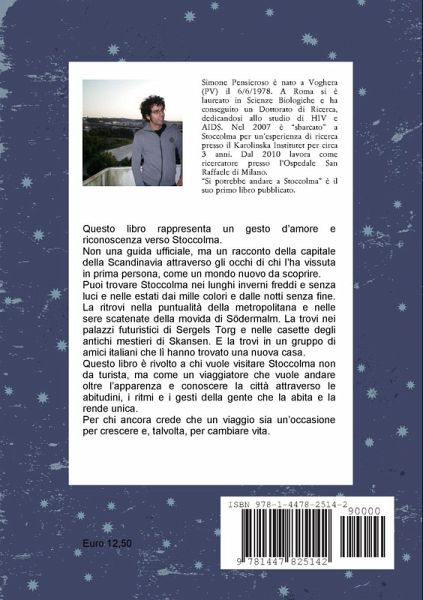Questo libro rappresenta un gesto d'amore e riconoscenza verso Stoccolma. Non una guida ufficiale, ma un racconto della capitale della Scandinavia attraverso gli occhi di chi l'ha vissuta in prima persona, come un mondo nuovo da scoprire. Puoi trovare Stoccolma nei lunghi inverni freddi e senza luci e nelle estati dai mille colori e dalle notti senza fine. La ritrovi nella puntualità della metropolitana e nelle sere scatenate della movida di Södermalm. La trovi nei palazzi futuristici di Sergels Torg e nelle casette degli antichi mestieri di Skansen. E la trovi in un gruppo di amici italiani che lì hanno trovato una nuova casa. Questo libro è rivolto a chi vuole visitare Stoccolma non da turista, ma come un viaggiatore che vuole andare oltre l'apparenza e conoscere la città attraverso le abitudini, i ritmi e i gesti della gente che la abita e la rende unica. Per chi ancora crede che un viaggio sia un'occasione per crescere e, talvolta, per cambiare vita.