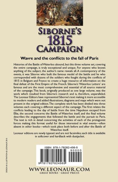 Wavre and the conflicts to the fall of Paris Histories of the Battle of Waterloo abound, but this three volume set, covering the entire campaign, is truly exceptional and unique. For anyone who knows anything of the subject, the author's name reveals all. A contemporary of the events, it was Siborne who built the famous model of the battle and he who corresponded with dozens of the soldiers who fought during the conflicts of 1815 in Belgium and France to create a huge resource of information on the final defeat of the First Empire of the French. Siborne's 'Waterloo Letters' are famous and are the most comprehensive and essential of all source material of the campaign. This book, originally produced as one large volume, was the work which resulted from Siborne's research and is, therefore, unparalleled. The Leonaur Editors have represented Siborne's text making it more accessible to modern readers and added illustrations, diagrams and maps which were not present in the original edition. The complete work has been divided into three volumes each covering a different aspect of the campaign. The first relates the conflicts leading to the day of battle from the time Napoleon escaped from Elba, the second concerns the Battle of Waterloo itself, and the final volume describes the engagements that followed the battle and the pursuit to Paris. The text is rich in detail concerning the activities of each of the protagonist forces making this format useful for those interested in vital events-often absent in other books-which took place both before and after the Battle of Waterloo itself. Leonaur editions are newly typeset and are not facsimiles; each title is available in softcover and hardback with dustjacket.