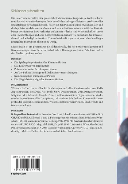 Drittmittelakquisition, Berufungen, Vorträge, Interviews & Co: Die Leser_innen erhalten eine praxisnahe Gebrauchsanleitung, wie sie konkrete kommunikative Herausforderungen ihres beruflichen Alltags effizienter, professioneller und effektiver bewältigen können. Rasch auf den Punkt zu kommen, sich einfach und doch präzise ausdrücken zu können und sich selbst bzw. wissenschaftliche Projekte besser positionieren bzw. verkaufen zu können - damit sind Wissenschaftler_innen aller Fachrichtungen und aller Karrierestufen innerhalb wie außerhalb der Universitäten aktuell ständig konfrontiert. Corona hat deutlich gemacht, was sich schon länger gezeigt hat: Fachwissen allein ist zu wenig.Dieses Buch ist ein praxisnaher Leitfaden für alle, die vor Fördermittelgebern und Kooperationspartnern, bei wissenschaftlichen Hearings, vor Laien-Publikum und in den Medien punkten wollen.