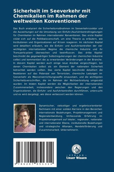 Das Buch analysiert die Sicherheitsmaßnahmen im Seeverkehrssektor und die Auswirkungen auf die Umsetzung von Einfuhr-/Ausfuhrkontrollregelungen für Chemikalien im Rahmen internationaler Konventionen. Das erste Kapitel stützt sich auf die Politikwissenschaft, um eine Theorie zu erläutern, wie Institutionen und Organisationen auf Krisen reagieren. Im nächsten Kapitel wird detailliert erläutert, wie die Einfuhr- und Ausfuhrkontrollen der vier wichtigsten internationalen Regime die chemische Industrie und ihr Transportsystem überwachen und beeinflussen. Das dritte Kapitel beschreibt die gegenwärtigen Selbstregulierungen der chemischen Industrie selbst und kommentiert die zu erwartenden Veränderungen in der Branche. In diesem Kapitel werden auch einige neue Ansätze vorgeschlagen, bei denen Chemikalien selbst als ein Element der nationalen Sicherheit betrachtet werden sollten. Das vierte Kapitel beschreibt detailliert die Reaktionen auf das Potenzial von Terroristen, chemische Ladungenim Seeverkehr als Massenvernichtungswaffe einzusetzen, und die wichtigsten Sicherheitsvorschriften, die im Rahmen der Nichtverbreitung umgesetzt wurden. Im letzten Kapitel werden die Möglichkeiten der internationalen Zusammenarbeit, insbesondere zwischen den Regierungen und den Organisationen, die Einfuhr- und Ausfuhrkontrollen durchführen, untersucht und es wird dargelegt, wie diese verbessert werden können.