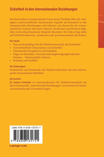 Das Buch liefert in komprimierter Form einen Überblick über die wichtigsten unterschiedlichen theoretischen Zugriffe auf Sicherheit in den Internationalen Beziehungen und erläutert, was daraus für die wissenschaftliche Analyse relevanter Akteure, Strukturen und Prozesse folgt. Dies wird anhand konkreter Beispiele illustriert. Der Fokus liegt dabei auf Sicherheitsakteuren, -strukturen und -prozessen jenseits des Staates.