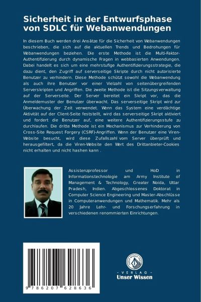 In diesem Buch werden drei Ansätze für die Sicherheit von Webanwendungen beschrieben, die sich auf die aktuellen Trends und Bedrohungen für Webanwendungen beziehen. Die erste Methode ist die Multi-Faktor-Authentifizierung durch dynamische Fragen in webbasierten Anwendungen. Dabei handelt es sich um eine mehrstufige Authentifizierungsstrategie, die dazu dient, den Zugriff auf serverseitige Skripte durch nicht autorisierte Benutzer zu verhindern. Diese Methode schützt sowohl die Webanwendung als auch ihre Benutzer vor einer Vielzahl von seitenübergreifenden Serverskripten und Angriffen. Die zweite Methode ist die Sitzungsverwaltung auf der Serverseite. Der Server bereitet ein Skript vor, das die Anmeldemuster der Benutzer überwacht. Das serverseitige Skript wird zur Überwachung der Zeit verwendet. Wenn das System eine verdächtige Aktivität auf der Client-Seite feststellt, wird das serverseitige Skript aktiviert und fordert die Benutzer auf, eine weitere Authentifizierungsstufe zu durchlaufen. Die dritte Methode ist ein Mechanismus zur Verhinderung von Cross-Site Request Forgery (CSRF)-Angriffen. Wenn der Benutzer eine Viren-Website besucht, wird diese Zufallszahl vom Server überprüft und herausgefiltert, da die Viren-Website den Wert des Drittanbieter-Cookies nicht erhalten und nicht hashen kann .
