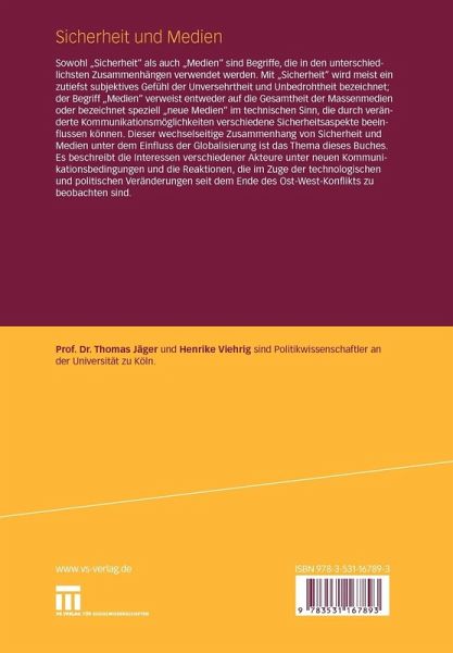 Sowohl "Sicherheit" als auch "Medien" sind Begriffe, die in den unterschiedlichsten Zusammenhängen verwendet werden. Mit "Sicherheit" wird meist ein zutiefst subjektives Gefühl der Unversehrtheit und Unbedrohtheit bezeichnet; der Begriff "Medien" verweist entweder auf die Gesamtheit der Massenmedien oder bezeichnet speziell "neue Medien" im technischen Sinn, die durch veränderte Kommunikationsmöglichkeiten verschiedene Sicherheitsaspekte beeinflussen können. Dieser wechselseitige Zusammenhang von Sicherheit und Medien unter dem Einfluss der Globalisierung ist das Thema dieses Buches. Es beschreibt die Interessen verschiedener Akteure unter neuen Kommunikationsbedingungen und die Reaktionen, die im Zuge der technologischen und politischen Veränderungen seit dem Ende des Ost-West-Konflikts zu beobachten sind.