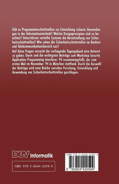 Security Application Programming Interfaces '94 Motivation und Ziele Die Entwicklung von Sicherheitstechniken in informationstechnischen Systemen (IT-Systemen) machte in den letzten Jahren groBe Fortschritte. So stehen inzwi schen Sicherheitsfunktionen in Betriebssystemen standardmiiBig zur Verfiigung. Funktionen in Datenbanksystemen oder in verteilten Systemen haben ebenfalls Einsatzreife. Auch in informationstechnischen Anwendungen, z. B. im elektroni schen Zahlungsverkehr werden Sicherheitsfunktionen genutzt. SchlieBlich kann im Bereich der eingesetzten lcryptographischen Mechanismen von einer Konsolidie rung gesprochen werden. Es war deshalb an der Zeit, ein Diskussionsforum zu schaff en, um Programmier schnittstellen (Application Programming Interfaces, APIs), mit denen IT-Sicher heitsmechanismen zur Verfiigung gestellt werden, zu sichten und aufihre Einsetz barkeit und Interoperabilitat zu untersuchen. Der im November 1994 erstmalig durchgefiihrte Workshop "Security Application Programming Interfaces" (Security APIs) ist ein solches Forum zum Erfahrungs austausch von Experten auf dem Gebiet von Sicherheitsprogrammierschnittstellen. Er dient u. a. dazu, eine Brucke zwischen Forschung, Entwicklung und Anwen dung von Sicherheitsschnittstellen zu schlagen. Programm 1m Rahmen des zweitiigigen Workshops werden in Form von Vortragen, Status berichten und Diskussionen wesentliche Aspekte von Security APIs untersucht. Schnittstellenkonzepte und Schnittstellendesign K-W. SchrOder, M. Ullmann und F. Koob erlautem, wie Programmierschnittstel len fur sicherheitskritische Anwendungen mit dem Verification Support Environ ment (VSE) entwickelt werden konnen. Da die Bereitstellung von evaluierten si cheren Systemen eine immer wichtigere Rolle einninnnt, stellen R. Baumgart und F. Beuting Gedanken zur Evaluation von Sicherheitsschnittstellen VOT. Entwurfs methoden fur lcryptographische Schnittstellen und ihre Subsysteme werden von O.