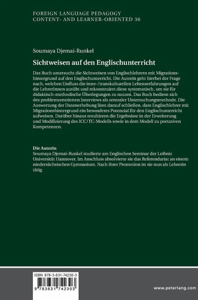 Das Buch untersucht die Sichtweisen von Englischlehrern mit Migrationshintergrund auf den Englischunterricht. Die Autorin geht hierbei der Frage nach, welchen Einfluss die inter-/transkulturellen Lebenserfahrungen auf die LehrerInnen ausübt und rekonstruiert diese systematisch, um sie für didaktisch-methodische Überlegungen zu nutzen. Das Buch bedient sich des problemzentrierten Interviews als zentraler Untersuchungsmethode. Die Auswertung der Datenerhebung lässt darauf schließen, dass Englischlehrer mit Migrationshintergrund ein besonderes Potenzial für den Englischunterricht aufweisen. Darüber hinaus resultieren die Ergebnisse in der Erweiterung und Modifizierung des ICC/TC-Modells sowie in dem Modell zu portativen Kompetenzen.