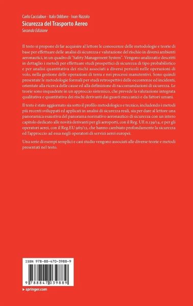 Il testo è stato aggiornato sia sotto il profilo metodologico e tecnico, includendo i metodi più recenti sviluppati ed applicati in analisi di sicurezza reali, sia per dare al lettore una panoramica esaustiva del panorama normativo aeronautico di sicurezza con un intero capitolo dedicato alle novità derivanti per gli aeroporti, con il Reg. UE n.139/14, e per gli operatori aerei, con il Reg.EU 965/12, che hanno cambiato profondamente la sicurezza ed l'approccio ad essa negli operatori di servizi aerei europei.