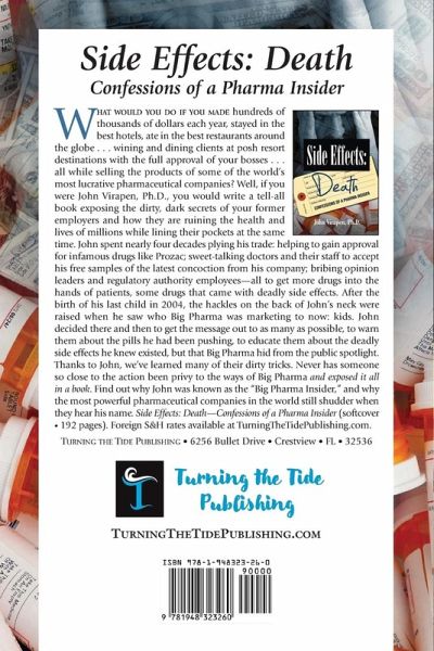 What would you do if you made hundreds of thousands of dollars each year, stayed in the best hotels, ate in the best restaurants around the globe . . . wining and dining clients at posh resort destinations with the full approval of your bosses . . . all while selling the products of some of the world's most lucrative pharmaceutical companies? Well, if you were John Virapen, Ph.D., you would write a tell-all book exposing the dirty, dark secrets of your former employers and how they are ruining the health and lives of millions while lining their pockets at the same time. John spent nearly four decades plying his trade: helping to gain approval for infamous drugs like Prozac; sweet-talking doctors and their staff to accept his free samples of the latest concoction from his company; bribing opinion leaders and regulatory authority employees-all to get more drugs into the hands of patients, some drugs that came with deadly side effects. After the birth of his last child in 2004, the hackles on the back of John's neck were raised when he saw who Big Pharma was marketing to now: kids. John decided there and then to get the message out to as many as possible, to warn them about the pills he had been pushing, to educate them about the deadly side effects he knew existed, but that Big Pharma hid from the public spotlight. Thanks to John, we've learned many of their dirty tricks. Never has someone so close to the action been privy to the ways of Big Pharma and exposed it all in a book. Find out why John was known as the "Big Pharma Insider," and why the most powerful pharmaceutical companies in the world still shudder when they hear his name.