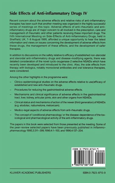 Recent concern about the adverse effects and relative risks of anti- inflammatory therapies has been such that another meeting was organized in the highly successful series of meetings on this topic. Adverse effects of anti-rheumatic and anti-inflammatory drugs are of major concern to all involved in the prescription, care and management of rheumatic and other patients receiving these important drugs. The IVth International Meeting on Side-Effects of Anti-Inflammatory Drugs, held in Sheffield, UK, 7-9 August 1995, afforded a unique opportunity to hear the latest information and views on issues concerning the development of adverse effects from these drugs, the management of these effects, and the development of safer therapies.