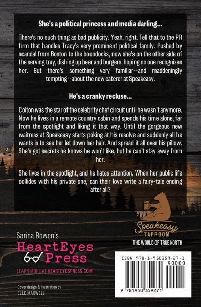 She's a political princess and media darling... There's no such thing as bad publicity. Yeah, right. Tell that to the PR firm that handles Tracy's very prominent political family. Pushed by scandal from Boston to the boondocks, now she's on the other side of the serving tray, dishing up beer and burgers, hoping no one recognizes her. But there's something very familiar--and maddeningly tempting--about the new caterer at Speakeasy. He's a cranky recluse... Colton was the star of the celebrity chef circuit until he wasn't anymore. Now he lives in a remote country cabin and spends his time alone, far from the spotlight and liking it that way. Until the gorgeous new waitress at Speakeasy starts poking at his resolve and suddenly all he wants is to see her let down her hair. And spread it all over his pillow. She's got secrets he knows he won't like, but he can't stay away from her. She lives in the spotlight, and he hates attention. When her public life collides with his private one, can their love write a fairy-tale ending after all?