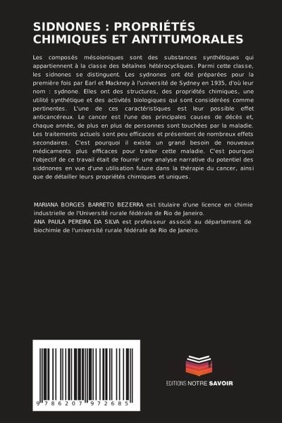 Les composés mésoioniques sont des substances synthétiques qui appartiennent à la classe des bétaïnes hétérocycliques. Parmi cette classe, les sidnones se distinguent. Les sydnones ont été préparées pour la première fois par Earl et Mackney à l'université de Sydney en 1935, d'où leur nom : sydnone. Elles ont des structures, des propriétés chimiques, une utilité synthétique et des activités biologiques qui sont considérées comme pertinentes. L'une de ces caractéristiques est leur possible effet anticancéreux. Le cancer est l'une des principales causes de décès et, chaque année, de plus en plus de personnes sont touchées par la maladie. Les traitements actuels sont peu efficaces et présentent de nombreux effets secondaires. C'est pourquoi il existe un grand besoin de nouveaux médicaments plus efficaces pour traiter cette maladie. C'est pourquoi l'objectif de ce travail était de fournir une analyse narrative du potentiel des siddnones en vue d'une utilisation future dans la thérapie du cancer, ainsi que de détailler leurs propriétés chimiques et uniques.