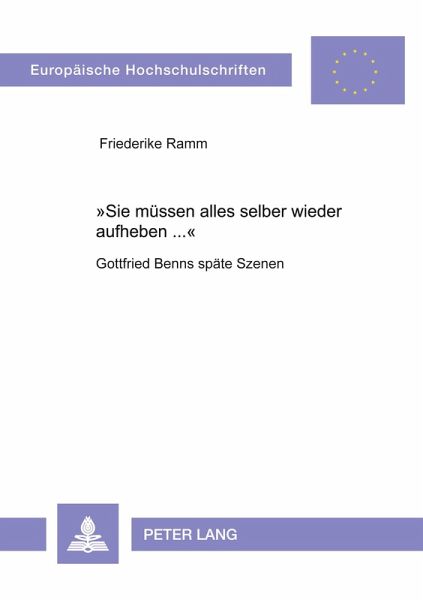 Gottfried Benn gilt als Verfechter der "monologischen Kunst". Seiner Skepsis gegenüber Gespräch und Diskussion entspricht die monologische Anlage seiner späten Erzählungen. Um so erstaunlicher ist es, daß Benn sich 1948, nach über dreißigjähriger Pause, wieder der szenischen Form zuwendet und sein fiktionales Schaffen mit zwei dialogischen Werken abschließt: Drei alte Männer (1949) und Die Stimme hinter dem Vorhang (1951). Was bewog den Verteidiger des Monologischen dazu, wieder Dialoge zu schreiben? Ausgehend von einer detaillierten Form- und Sprachanalyse der beiden Werke zeigt die Studie Entwicklungen in Benns Gesamtwerk auf, weist auf Bezüge zur metaphysisch-religiösen Dramatik der Nachkriegszeit hin und stellt Inszenierungen dieser nicht für die Aufführungspraxis geschriebenen Werke vor.