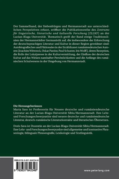 Der Sammelband, der Siebenbürgen und Hermannstadt aus unterschiedlichen Perspektiven erfasst, eröffnet die Publikationsreihe des Zentrums für linguistische, literarische und kulturelle Forschung (ZLLKF) an der Lucian-Blaga-Universität. Thematisch greift der Band einige Traditionslinien der Hermannstädter Germanistik auf, die insbesondere der Erforschung der deutschsprachigen Literatur und Kultur in dieser Region gewidmet sind: Autobiografisches und Fiktionales in der Erzählkunst rumäniendeutscher Autoren (Joachim Wittstock, Oskar Pastior, Paul Schuster, Iris Wolff), deren Rezeption, die Rolle der Lokalpresse in der Kulturvermittlung, der Einfluss der deutschen Kultur auf das Wirken namhafter Persönlichkeiten und die Anfänge des rumänischen Schulwesens in der Umgebung von Hermannstadt.