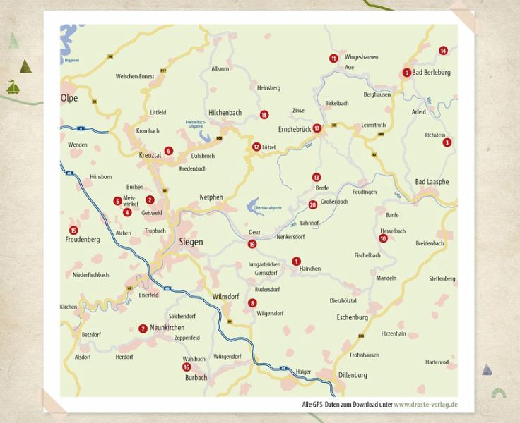 Malerische Täler und markante Höhenzüge, unberührte Natur und lebendige Kulturschätze, duftende Rosen und rauschende Bäche: Siegerland und Wittgensteiner Land faszinieren als Wanderregion voller Gegensätze. Hier spaziert man über fürstlichen Boden und erkundet alte Bergmannspfade, trifft wilde Wisente und blickt vom Siegerländer Leuchtturm in die Ferne. Für kulinarische Glücksmomente sorgen urige Gasthöfe und gemütliche Cafés, die zum Verweilen und Genießen einladen.Unsere Wanderbücher bieten echte Wohlfühlwege für jede Stimmung. Mit eindrucksvollen Fotos, berührenden Texten und…mehr