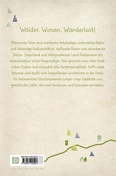 Malerische Täler und markante Höhenzüge, unberührte Natur und lebendige Kulturschätze, duftende Rosen und rauschende Bäche: Siegerland und Wittgensteiner Land faszinieren als Wanderregion voller Gegensätze. Hier spaziert man über fürstlichen Boden und erkundet alte Bergmannspfade, trifft wilde Wisente und blickt vom Siegerländer Leuchtturm in die Ferne. Für kulinarische Glücksmomente sorgen urige Gasthöfe und gemütliche Cafés, die zum Verweilen und Genießen einladen.Unsere Wanderbücher bieten echte Wohlfühlwege für jede Stimmung. Mit eindrucksvollen Fotos, berührenden Texten und abwechslungsreichen Touren wird jede Wanderung zum besonderen Erlebnis. Entspannung und Inspiration garantiert - ideal auch als Geschenk!