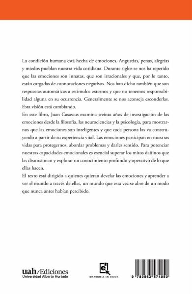 En este libro, Juan Casassus examina treinta años de investigación de las emociones desde la filosofía, las neurociencias y la psicología, para mostrarnos que las emociones son inteligentes y cognitivas y que cada persona las va construyendo a partir de su experiencia vital. Las emociones participan en nuestras vidas para protegernos, abordar problemas y darles sentido. Para potenciar nuestras capacidades emocionales es esencial superar los mitos dañinos que las distorsionan y explorar un conocimiento profundo y operativo de lo que ellas hacen.
