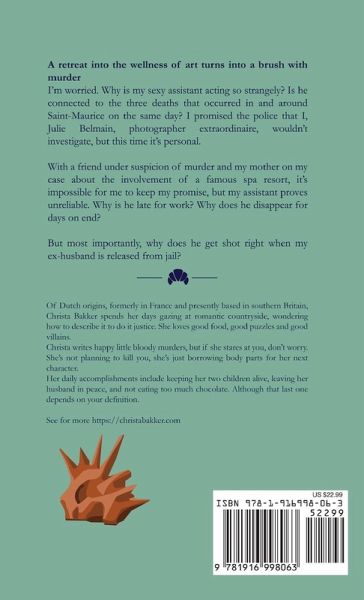 A retreat into the wellness of art turns into a brush with murder I'm worried. Why is my sexy assistant acting so strangely? Is he connected to the three deaths that occurred in and around Saint-Maurice on the same day? I promised the police that I, Julie Belmain, photographer extraordinaire, wouldn't investigate, but this time it's personal. With a friend under suspicion of murder and my mother on my case about the involvement of a famous spa resort, it's impossible for me to keep my promise, but my assistant proves unreliable. Why is he late for work? Why does he disappear for days on end? But most importantly, why does he get shot right when my ex-husband is released from jail?