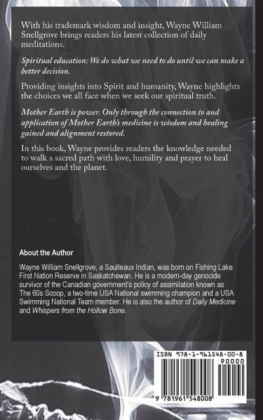 With his trademark wisdom and insight, Wayne William Snellgrove brings readers his latest collection of daily meditations. Spiritual education: We do what we need to do until we can make a better decision. Providing insights into Spirit and humanity, Wayne highlights the choices we all face when we seek our spiritual truth. Mother Earth is power. Only through the connection to and application of Mother Earth's medicine is wisdom and healing gained and alignment restored. In this book, Wayne provides readers the knowledge needed to walk a sacred path with love, humility and prayer to heal ourselves and the planet.