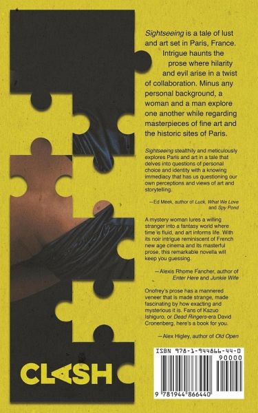 Sightseeing is a tale of lust and art set in Paris, France. Intrigue haunts the prose where hilarity and evil arise in a twist of collaboration. Minus any personal background, a woman and a man explore one another while regarding masterpieces of fine art and the historic sites of Paris. Sightseeing, stealthily and meticulously explores Paris and art in a tale that delves into questions of personal choice and identity with a knowing immediacy that has us questioning our own perceptions and views of art and storytelling. Ed Meek, author of Luck, What We Love and Spy Pond A mystery woman lures a willing stranger into a fantasy world where time is fluid, and art informs life. With its noir intrigue reminiscent of French new age cinema and its masterful prose, this remarkable novella will keep you guessing. Alexis Rhome Fancher, author of Enter Here and Junkie Wife Onofrey’s prose has a mannered veneer that is made strange, made fascinating by how exacting and mysterious it is. Fans of Kazuo Ishiguro, or Dead Ringers-era David Cronenberg, here’s a book for you. Alex Higley, author of Old Open