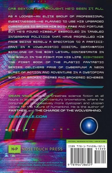 THE PLASTIC FANTASTIC BOOK 1 Cam Sexton had thought he'd seen it all. As a Looker-an elite group of professional eyewitnesses-he planned to use his upgraded cybereyes to bring him both fame and fortune. But he's found himself embroiled in tangled intergang politics that have propelled him from being merely a spectator to a participant in a voyeuristic digital deathmatch with one of the most lethal contestants in the world, in the fight for his life. SIGHTSEER, the first book of THE PLASTIC FANTASTIC series, delivers fans of cyberpunk a neon blast of action and adventure in a dystopian world of broken dreams and brokered schemes.