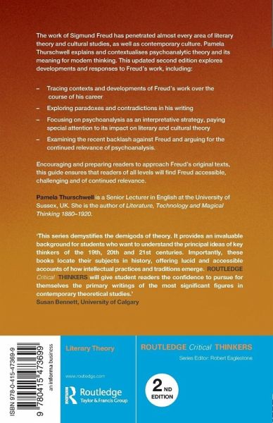 The work of Sigmund Freud has penetrated almost every area of literary theory and cultural studies, as well as contemporary culture. Encouraging and preparing readers to approach Freudâ s original texts, this guide ensures that readers of all levels will find Freud accessible, challenging and of continued relevance.