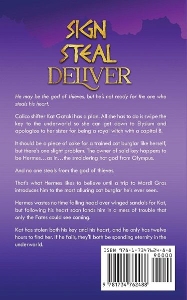 He may be the god of thieves, but he's not ready for the one who steals his heart. Calico shifter Kat Gataki has a plan. All she has to do is swipe the key to the underworld so she can get down to Elysium and apologize to her sister for being a royal witch with a capital B. It should be a piece of cake for a trained cat burglar like herself, but there's one slight problem. The owner of said key happens to be Hermes...as in...the smoldering hot god from Olympus. And no one steals from the god of thieves. That's what Hermes likes to believe until a trip to Mardi Gras introduces him to the most alluring cat burglar he's ever seen. Hermes wastes no time falling head over winged sandals for Kat, but following his heart soon lands him in a mess of trouble that only the Fates could see coming. Kat has stolen both his key and his heart, and he only has twelve hours to find her. If he fails, they'll both be spending eternity in the underworld. If you like quirky humor and heroes with heart, you'll love this Greek gods inspired paranormal romantic comedy!