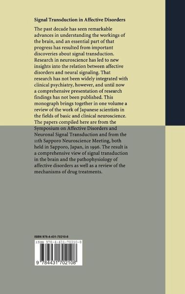 Recent progress in brain science has been remarkable, especially with regard to advances in the area of neuroscience. Particularly in the past decade, there have been many important discoveries about signal transduction in the brain. With this background, biological research in affective disorders has become well developed in relation to neural signaling. However, this field is fairly hard to understand comprehensively, and there is relatively little integrative work with clinical psychiatry in spite of the involvement of a wide variety of scien tific disciplines. This monograph brings…mehr
