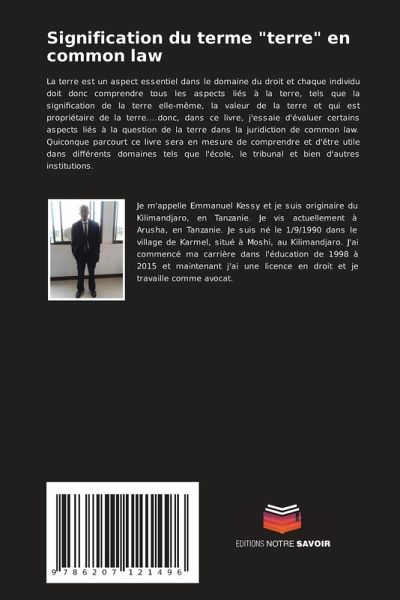 La terre est un aspect essentiel dans le domaine du droit et chaque individu doit donc comprendre tous les aspects liés à la terre, tels que la signification de la terre elle-même, la valeur de la terre et qui est propriétaire de la terre....donc, dans ce livre, j'essaie d'évaluer certains aspects liés à la question de la terre dans la juridiction de common law. Quiconque parcourt ce livre sera en mesure de comprendre et d'être utile dans différents domaines tels que l'école, le tribunal et bien d'autres institutions.