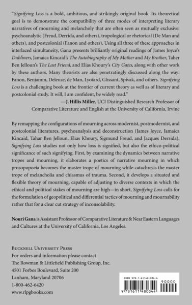 By remapping the configurations of mourning across modernist, postmodernist, and postcolonial literatures, psychoanalysis and deconstruction, Signifying Loss studies not only how loss is signified, but also the ethico-political significance of such signifying.