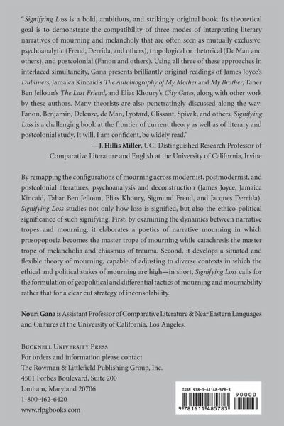 By remapping the configurations of mourning across modernist, postmodernist, and postcolonial literatures, psychoanalysis and deconstruction, Signifying Loss studies not only how loss is signified, but also the ethico-political significance of such signifying.