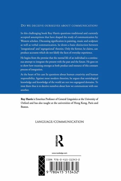 In Signs, Language and Communication readers familiar with the arguments of Professor Harris' previous work, including Signs of Writing, will find those ideas developed here to cover not just writing, but aspects of art, design and manufacture. Roy Harris proposes a new theory of communication. He begins with the premise that the mental life of an individual should be conceived as a continuous attempt to integrate the present with the past and future. He concludes by arguing that communication should be viewed as both a product and a resource of this constant act of integration.