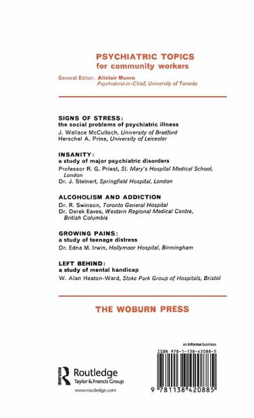 First Published in 1978. One of the questions constantly being asked of a psychiatrist is, 'Are mental illnesses on the increase?' A second is, 'Do you think the stress of modern living is responsible for the increase in mental illness?' This book, which is one of a series on psychiatric illness, takes a cool but compassionate look at the whole field of psychiatric disorder and, in the process, rips away some of the veils of obscurity surrounding it. The series is not primarily designed for medical men, rather, it is designed for the concerned layman-a very wide term. It has been authoritatively calculated that one person in ten in the United Kingdom will enter hospital at some time in life with a predominantly psychological problem, and one in four will consult a doctor at some stage with such a condition.